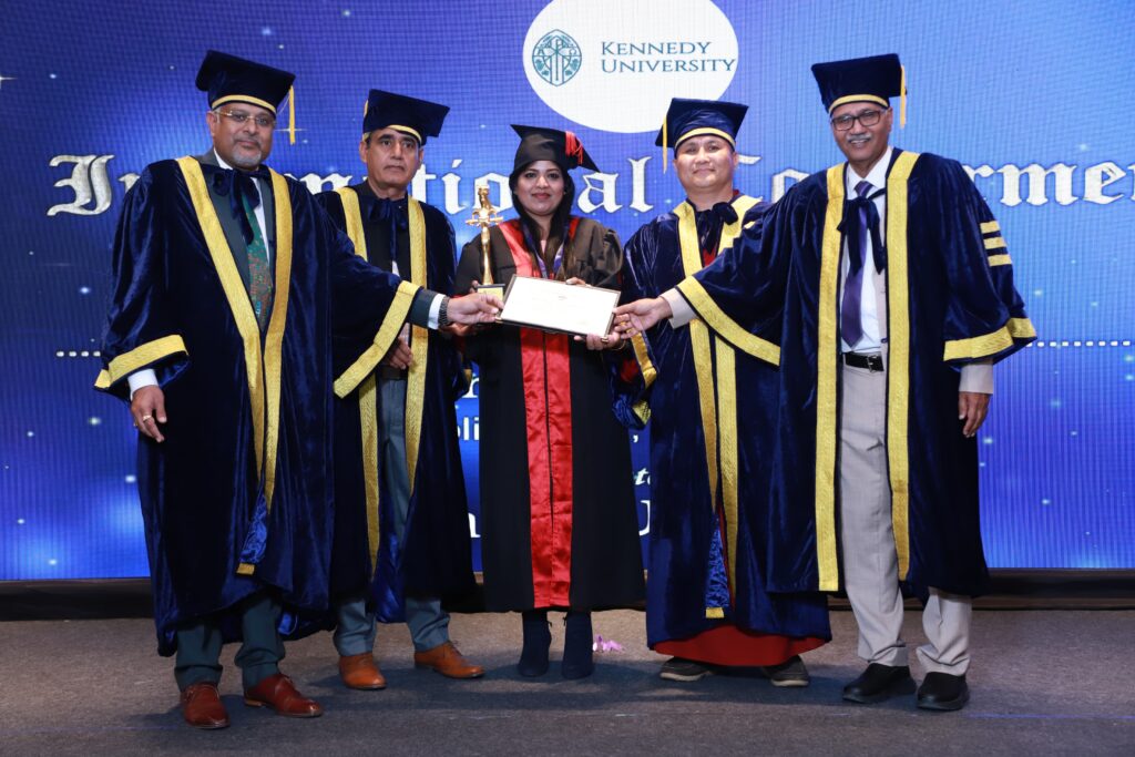 Delhi, March 1, 2025: Kennedy University celebrated success in academia by holding its annual convocation ceremony in Delhi on March 1st, which was a major milestone for graduates from all over India. Many students who successfully finished their Ph.D. Programs were awarded degrees during the event.