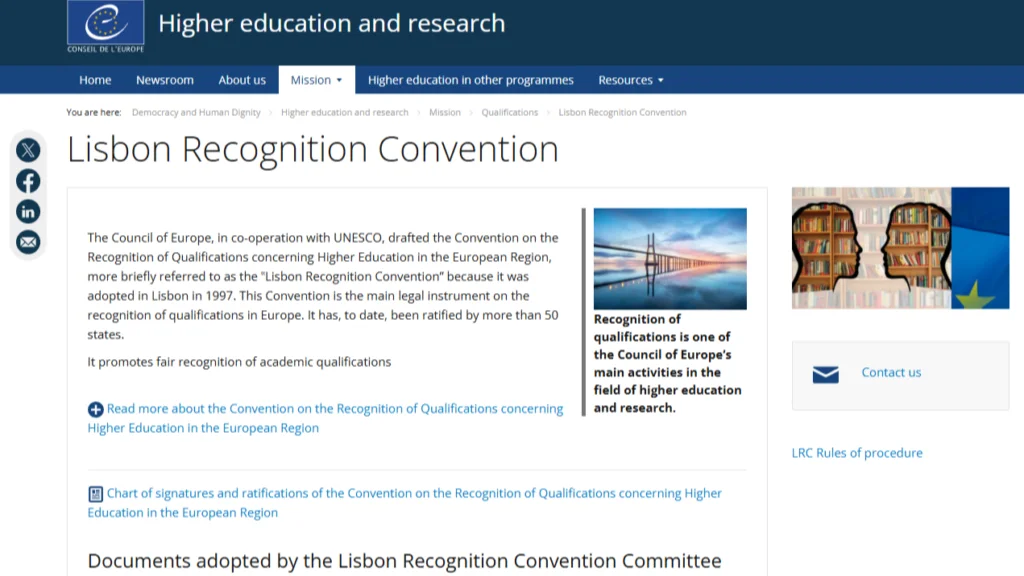 Home Admissions Higher Education and International Recognition: The Role of the Lisbon Convention and IARC/NIARS